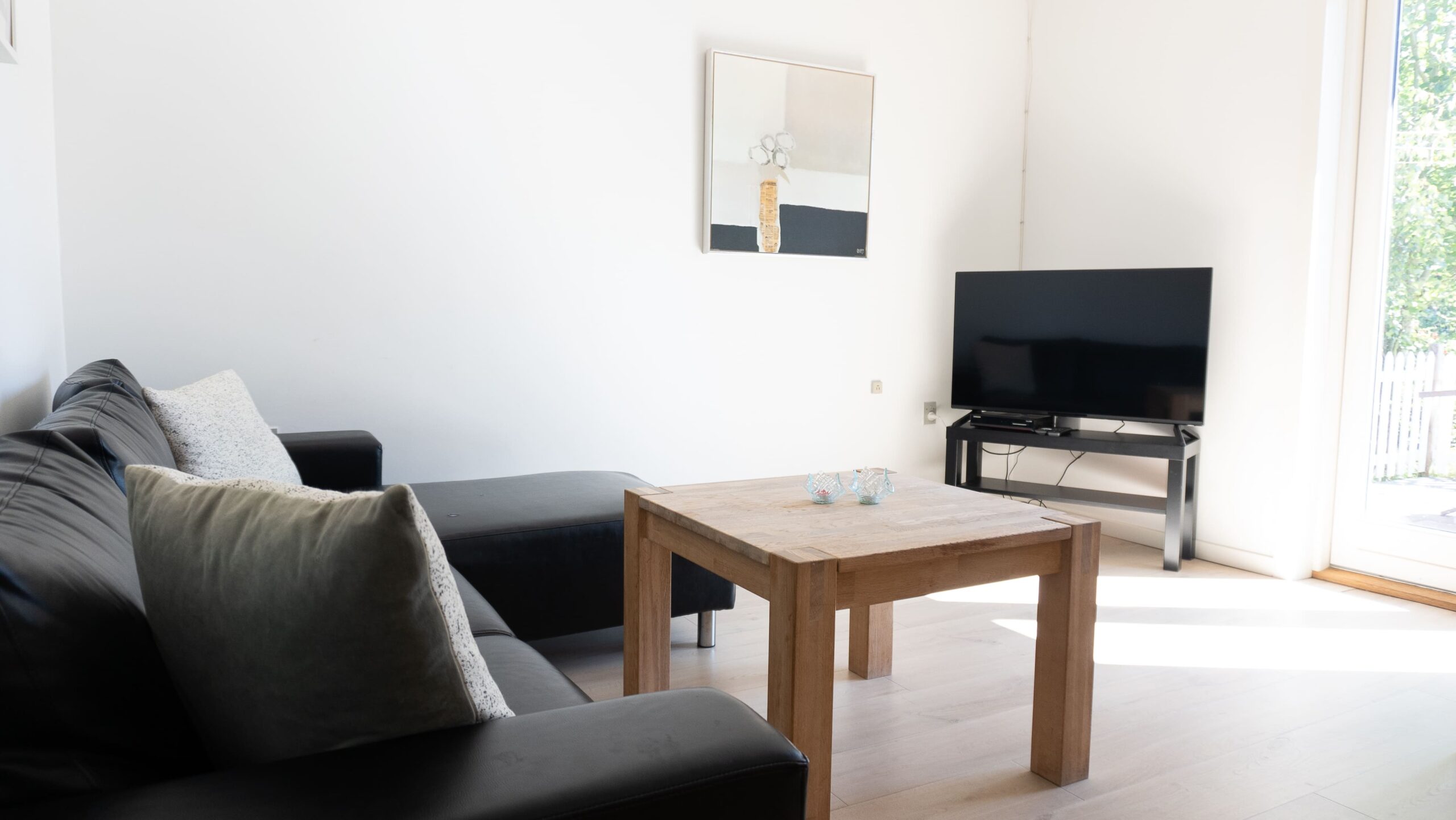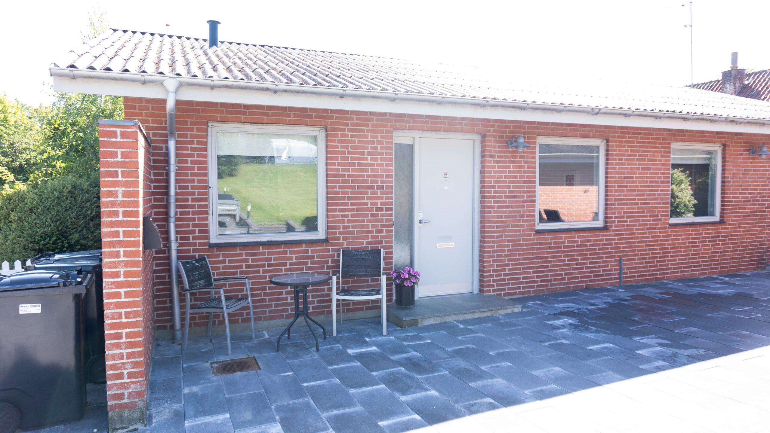 Anneks 1 er en lejlighed med plads til 4 gæster. Der er to soveværelser med dobbeltsenge. Derudover er der toilet med bruser, køkken, spiseplads og stue med den store tv-pakke. Til Anneks 1 er der en lille terrasse og adgang til udendørs spiseplads med grill.