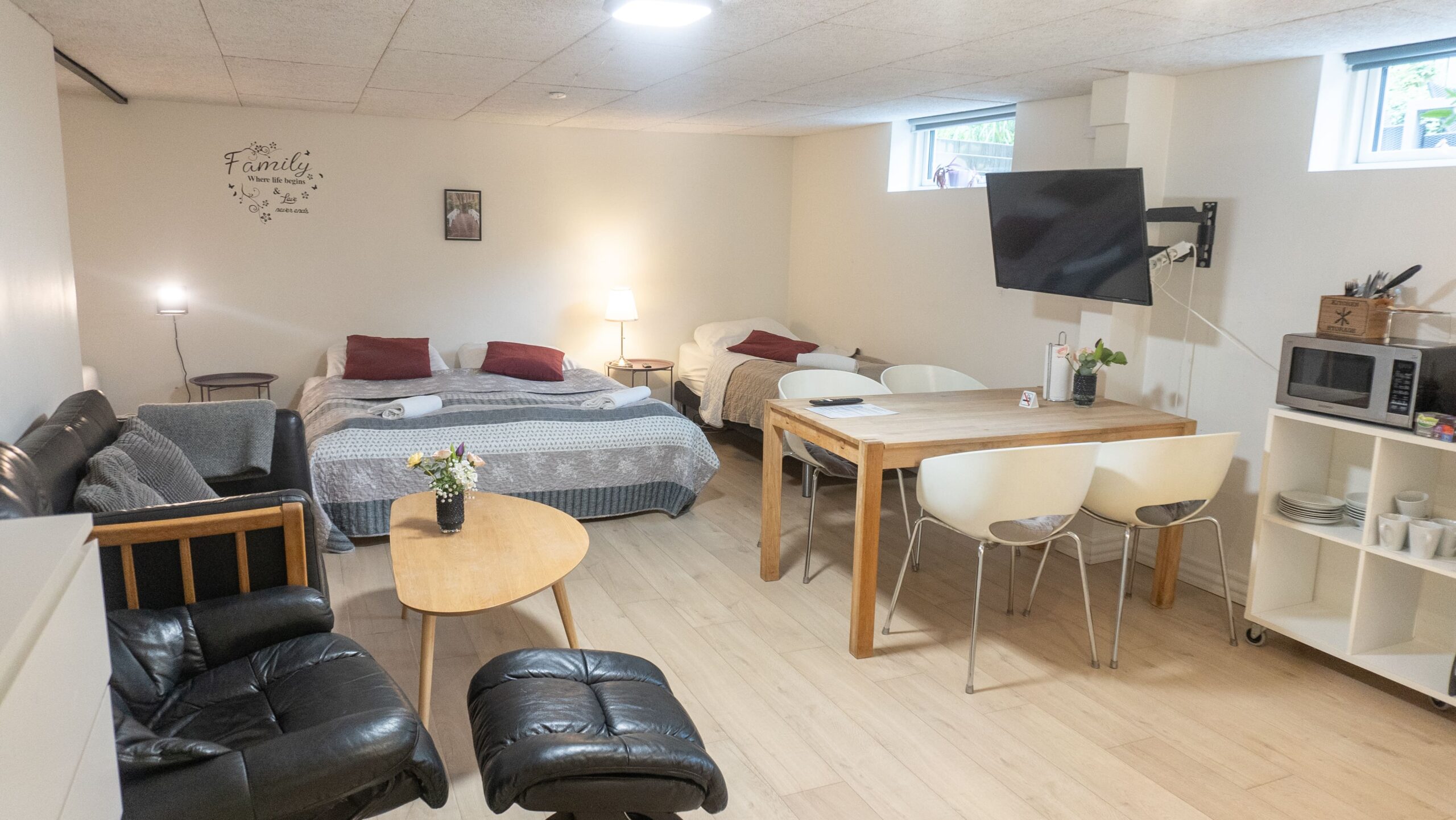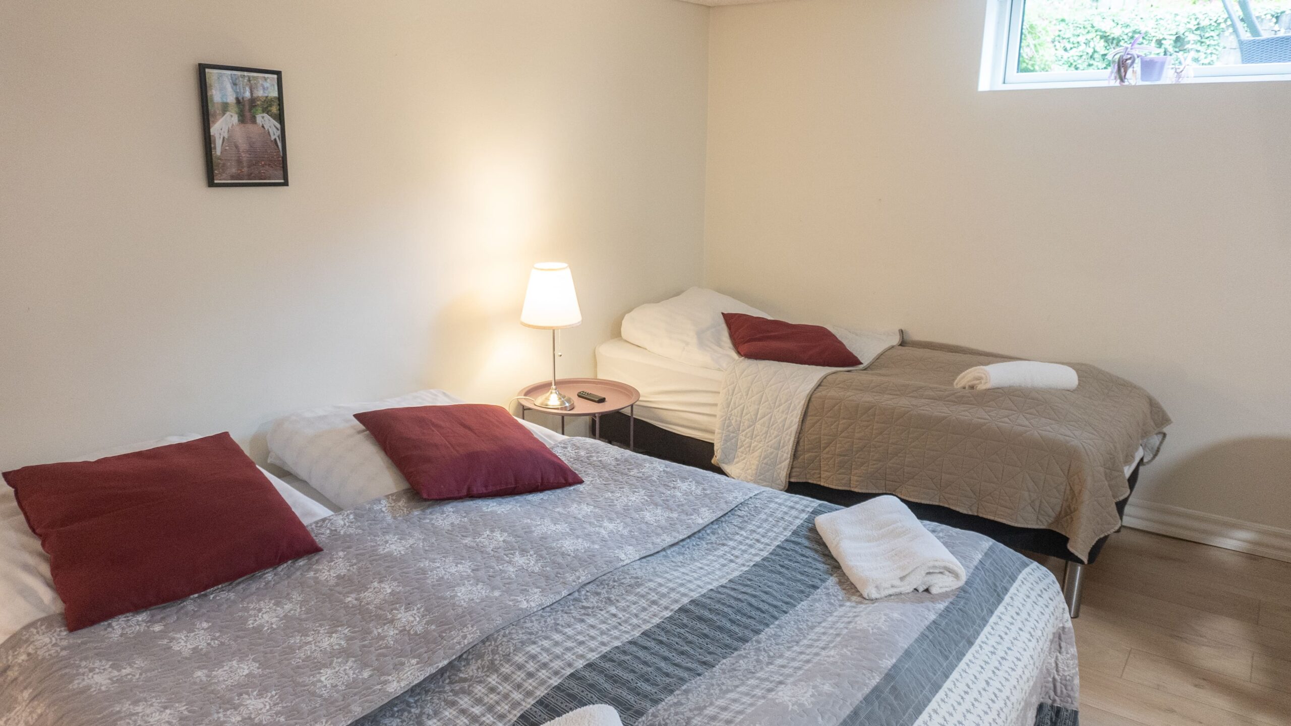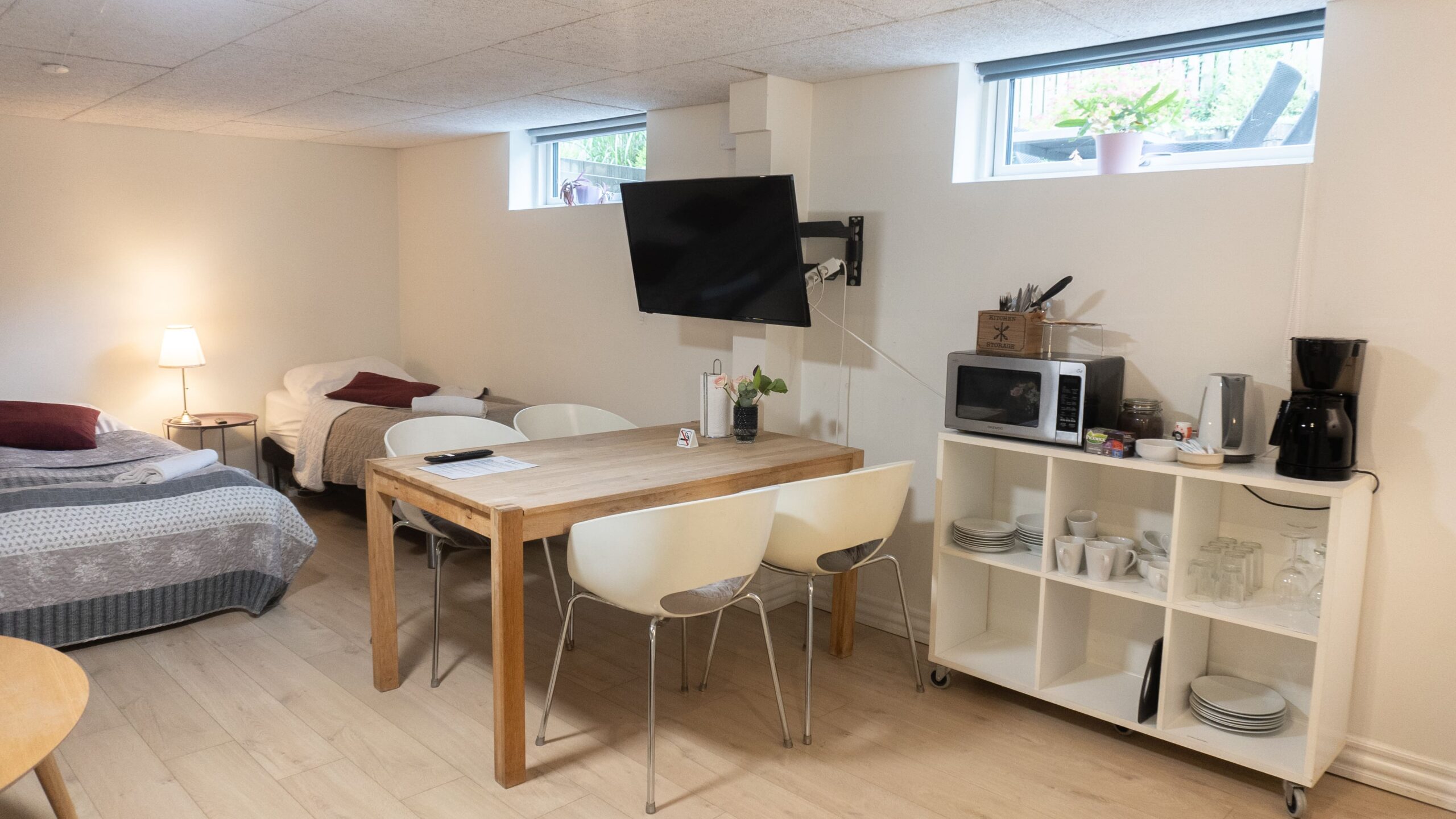 Kabyssen 3 er et trippelværelse med plads til 3 gæster. Der er et te-køkken og eget badeværelse. På værelset er der fjernsyn med Viaplay og stor tv-pakke. Værelset ligger i kælderen og har adgang til en stor fælles terrasse med siddepladser og grill.